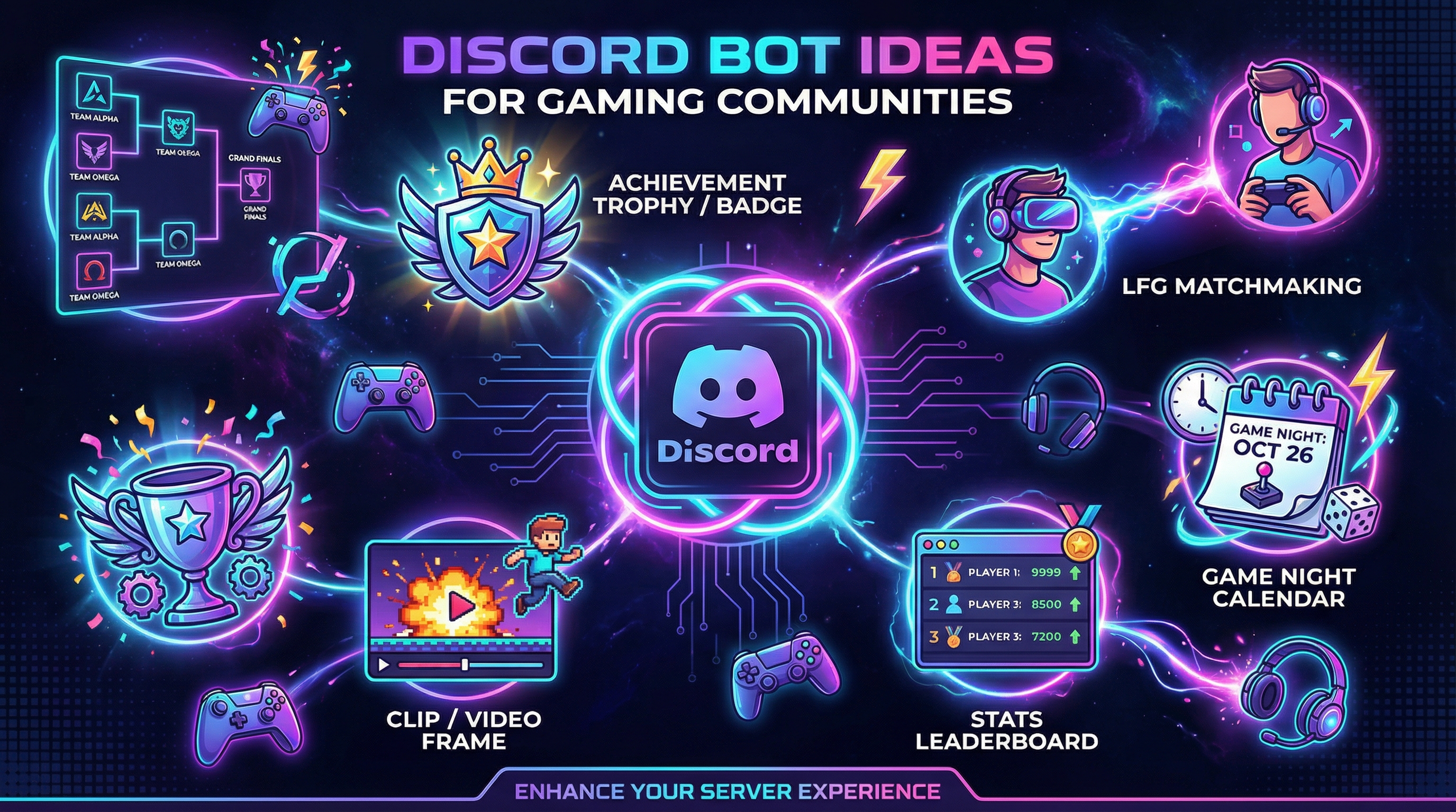 These aren't rehashed "top 10 bots" suggestions. These are specific, buildable bot features for gaming communities—with implementation notes so you can actually make them happen.